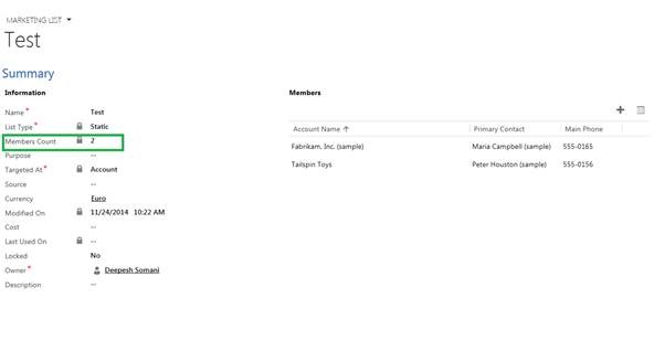 One of the cool thing to try out on marketing list is that the count can be shown on CRM 2013/2011 form. Refer Form editor for Marketing list, highlighted field below: