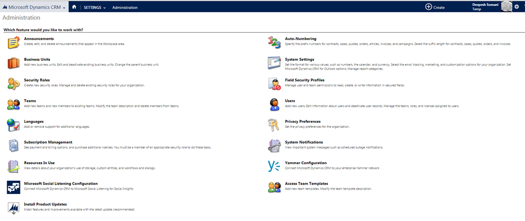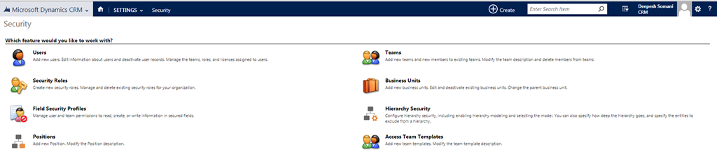 · Navigation changes for Security Area from Administration area for Teams, Security Roles, Users etc.: