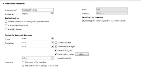 Step 1: Taking example of lead entity, create a workflow on update of lead entity: