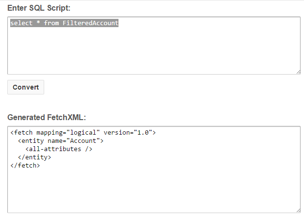 Negative scenario: Though this is not realistic to convert below to FetchXML, I wanted to see the tool’s reaction to such a query. And it doesn’t break: