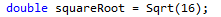 For eg. Using Math.Sqrt is not required anymore. Sqrt is enough: