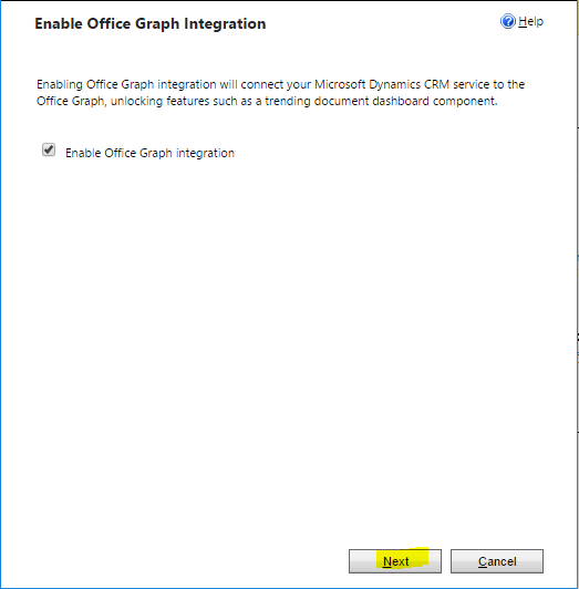 2. Click Enable Office Graph integration to enable it, and then click Next.