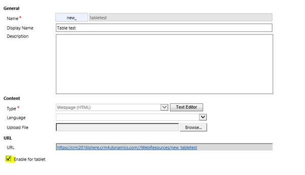 This doesnt work on my CRM 2016! I have a HTML file that says Hello world and it does not show up on my Tablet. It shows up on my CRM.