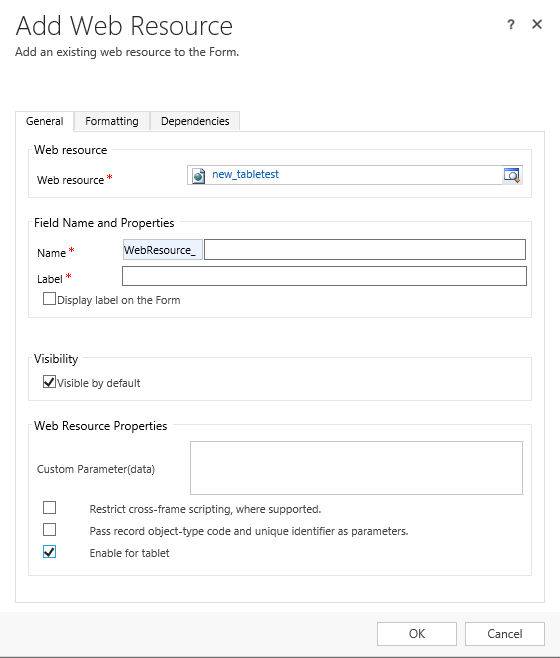 - You can’t use popups for authentication or other purposes from within IFrames and web resources on CRM for tablets.