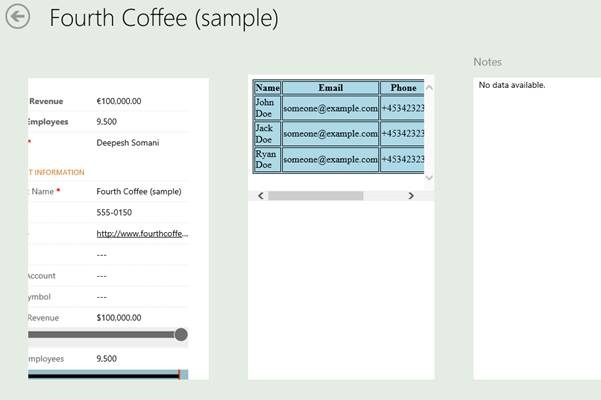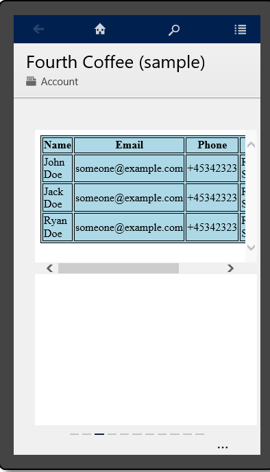 Here I am taking a html web resource with a table to be put on Accounts form(Remember to check enable for tablets on web resource creation):