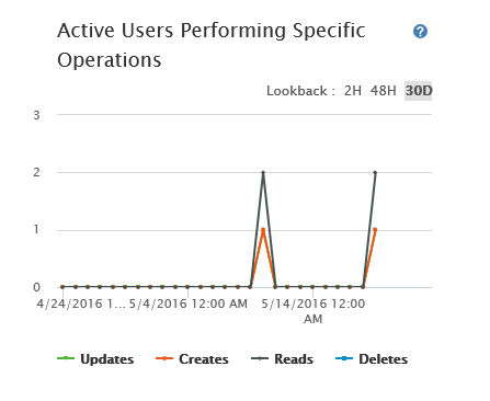 · Active users performing specific operations: This one gives a plot of various events:
