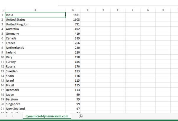 Here I have collected a random data of my Blog traffic across regions and am uploading this into POWER BI desktop: