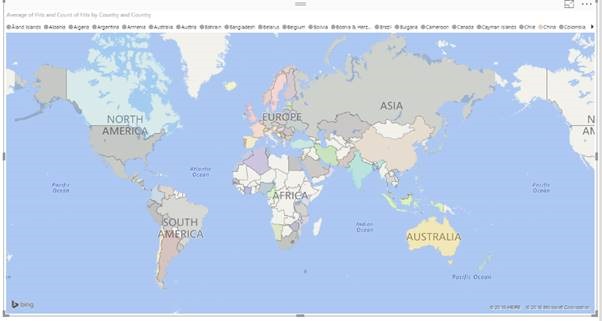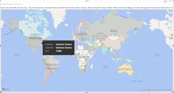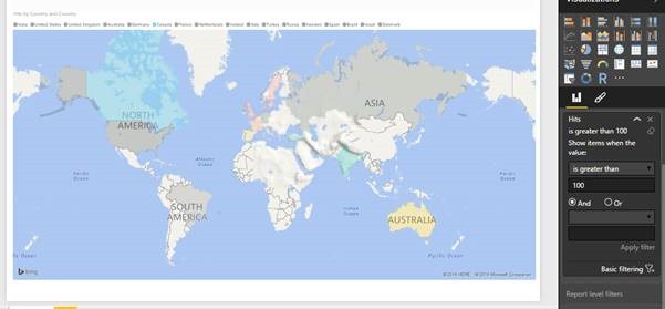 On visualizations I took Filled map, Chose Country as Latitude and Hits as Longitude: