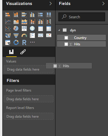 Well, just wait. The next thing I am going to show is I am going to get Hits added to the filter, For this I am just dragging the field for Hits to Page Level filters area: