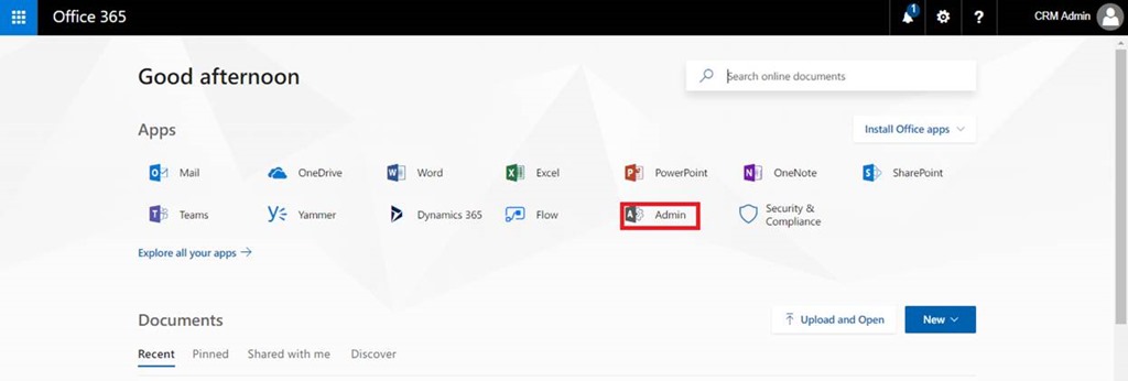 1. Log into Office 365 as a Global Administrator and go to Admin section.