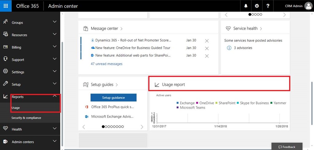 2. Now scroll down the Home screen and select Usage Report or click Report then select Usage from navigation.