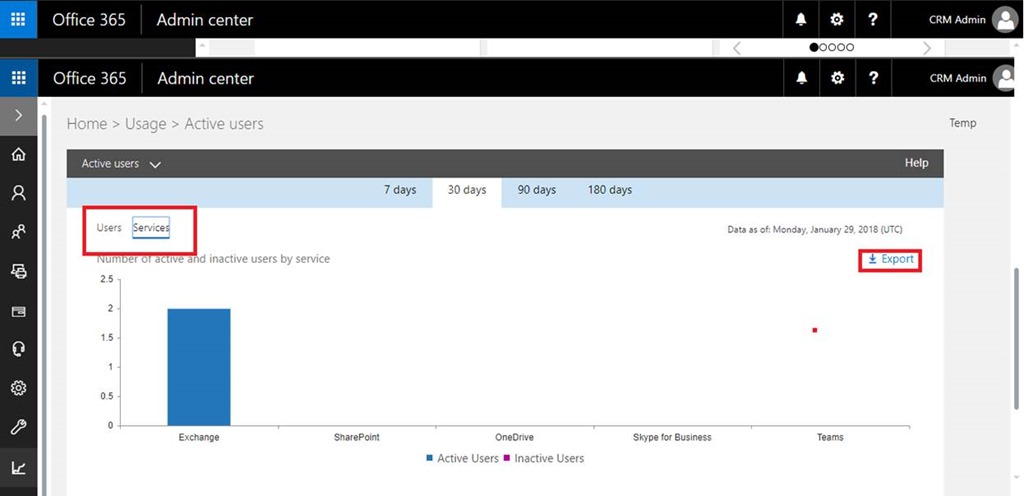 4. Select active user report this report will show different active users. To download report output, click on export button. Automatically report will start to download.