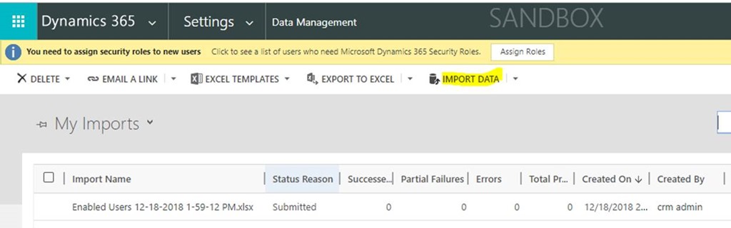 3. Navigate to Settings->Data Management->Imports and click on Import Data: