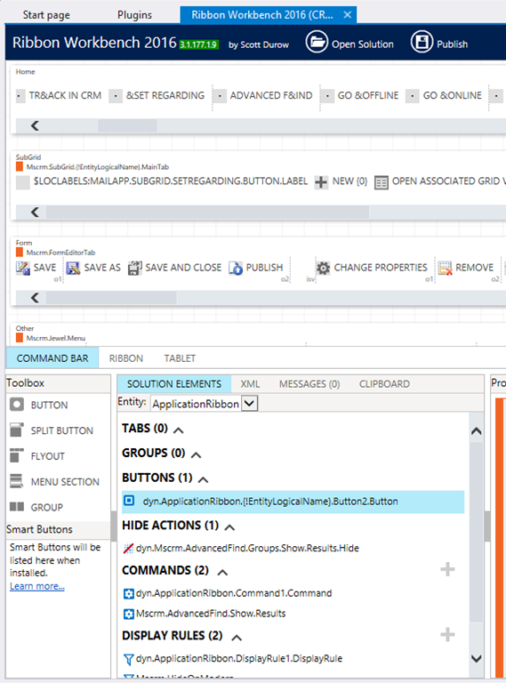 1. Add Application ribbon under Client extensions in a solution and then open this solution in XRMToolbox, Ribbon Work bench 2016:
