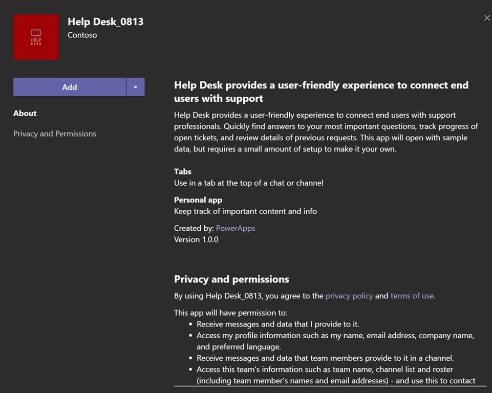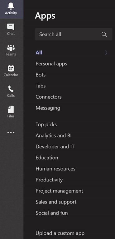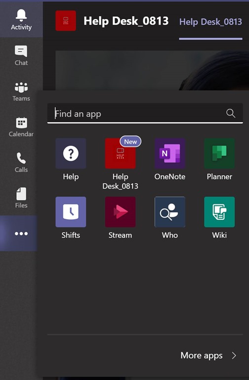Navigate to the Apps section and select Add to Teams option by expanding the Menu under …(three dots)