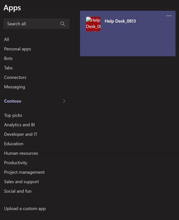 Under Microsoft Teams login, Select Apps and then click on Upload a custom App option:
