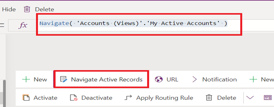 Navigate(‘Accounts (Views)’.’My Active Accounts’)