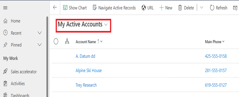 On click of “Navigate Active Record” button, we will navigate to “My Active Accounts” view
