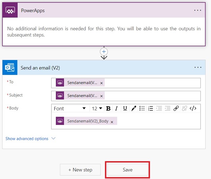 - Click on “Ask in power apps” it will automatically fill dynamic content in the “To” data card.