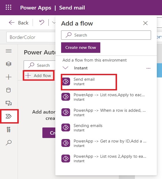 - Click on the “power automate” on the left navigation panel in Canvas app.