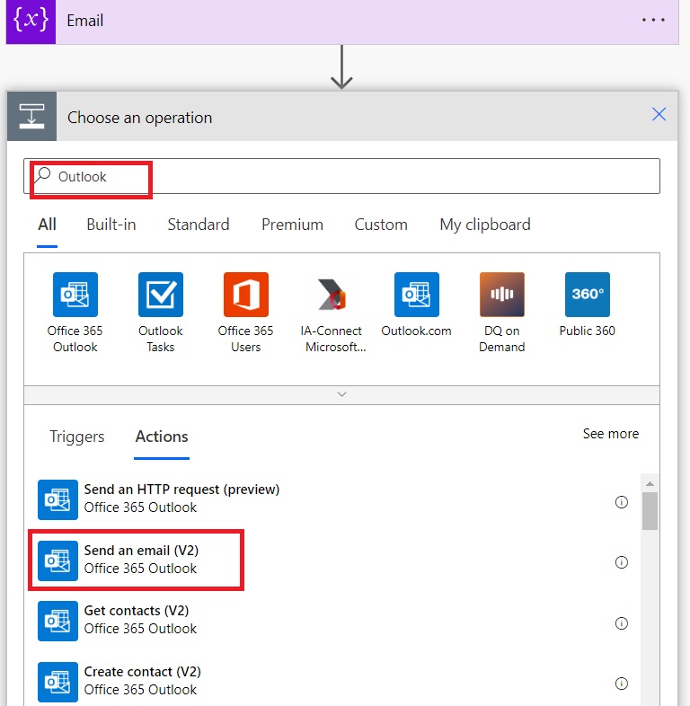 - Select “Send an email (V2).”