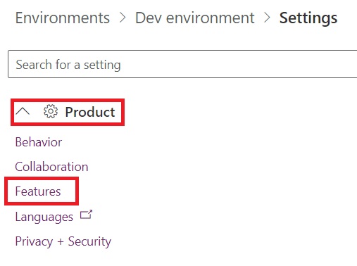 - Expand “Product” and select “Features.”