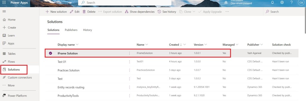 - If you don’t have an IFrame solution, refer to the link below for downloading the solution.{https://github.com/yashag2255/iframePCF/blob/master/IFrameSolution_1_0_0_1_managed.zip}