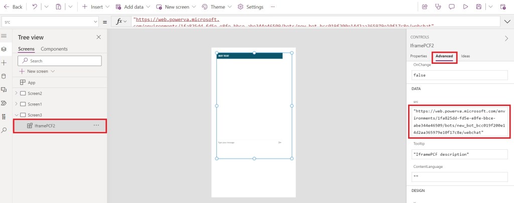- IFrame will hold Canvas App and bot together.