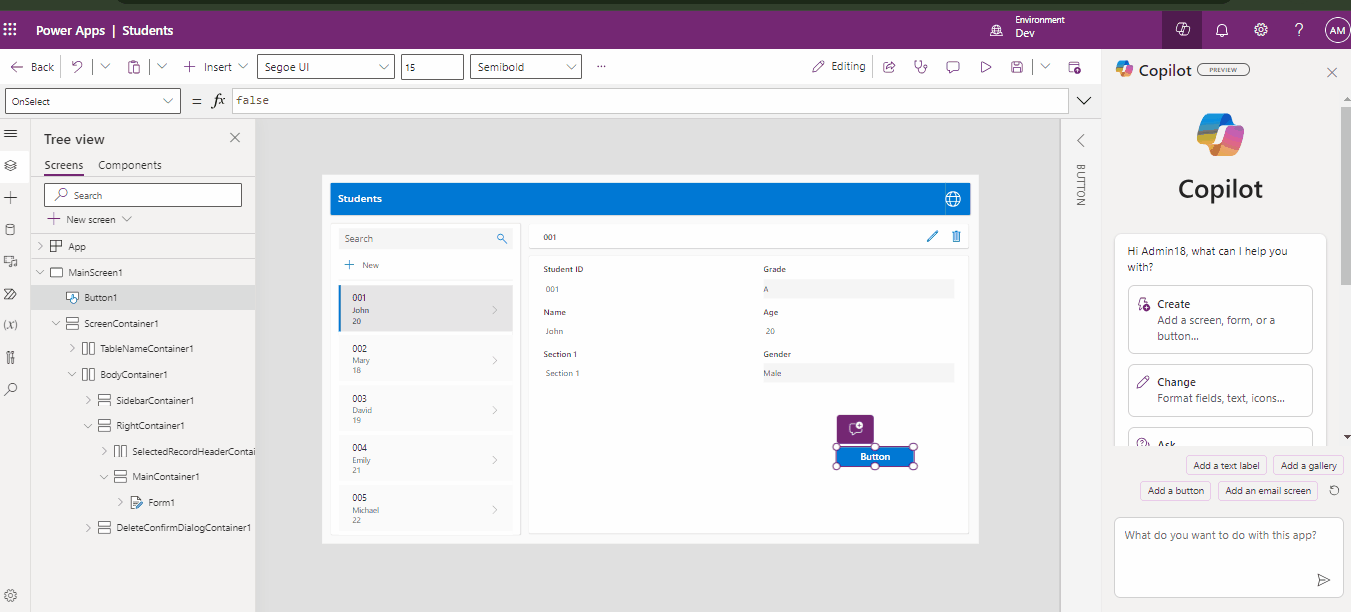 In this blog we will check the new features of Microsoft Copilot for Canvas App, Microsoft Copilot stands out as a revolutionary feature for Canvas Apps, offering a trio of functionalities: Create, Change, and Ask. These features are designed to empower both developers and end-users with AI-powered capabilities, streamlining the app creation and usage process.