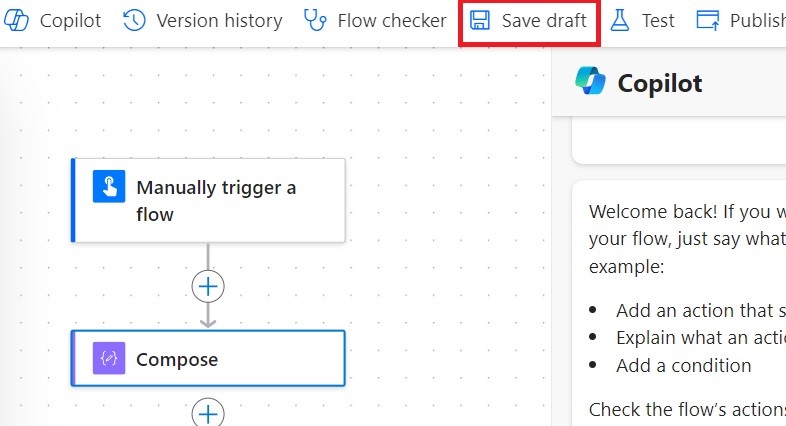 Note: This new “Save draft” feature will help you save your flow, even if you have error in flow.
